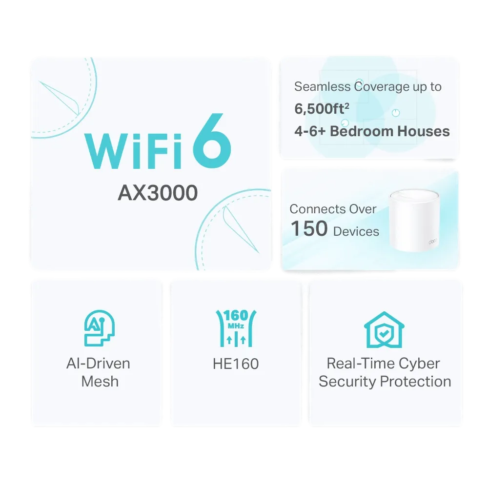 מגדיל טווח (יחידה אחת באריזה)Deco X50 AX3000 Whole Home Mesh WiFi 6 System