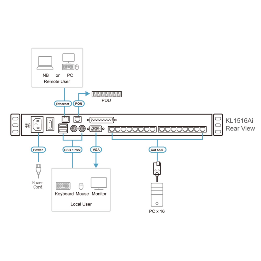 KL1516AIN 16P CAT5 19″-LCD KVM