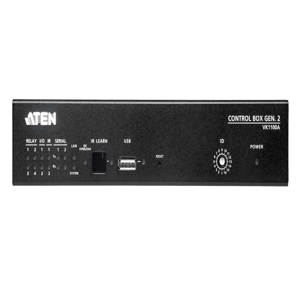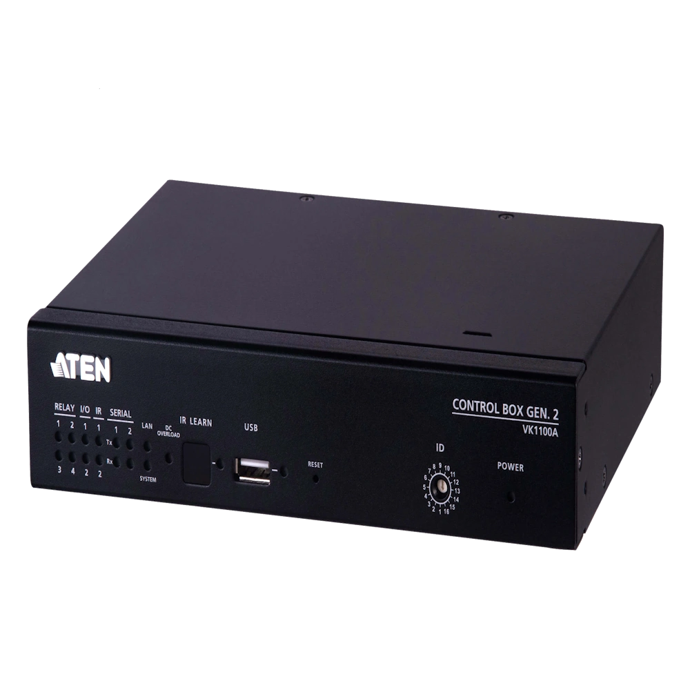 ה-VK1100A הוא בקר קומפקטי וחכם מבית ATEN (דור שני), המיועד לשליטה מרכזית וניהול חדרים חכמים, מערכות AV, תאורה, מיזוג, וציוד מתקדם נוסף. הבקר מבוסס מעבד מרובע ליבות עם ביצועים גבוהים, כולל ממשק רשת Gigabit, תמיכה בפקודות RS-232, ממסרים, קלט/פלט דיגיטלי, פרוטוקולים פתוחים ואפליקציית שליטה ייעודית. אידיאלי לכיתות, חדרי ישיבות, מרכזי בקרה, ארגונים ממשלתיים ועוד.